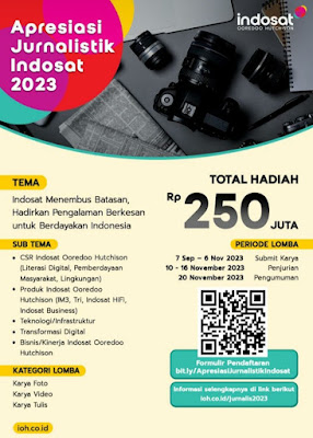 Klik link Formulir Pendaftaran : *bit.ly/ApresiasiJurnalistikIndosat*